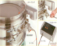 超聲波篩分系統(tǒng)由超聲波發(fā)生器、換能器、共振環(huán)組成。超聲波發(fā)生器產(chǎn)生高頻震蕩,由換能器轉(zhuǎn)換成高頻正弦形式的縱向震蕩波,這個震蕩波傳到共振環(huán)上使共振環(huán)產(chǎn)生共振,然后有共振環(huán)將振動均勻的傳輸至篩面,篩網(wǎng)上的物料在做低頻三次元振動的同時,疊加上超聲波振動效應(yīng),既可達到防止篩面網(wǎng)孔堵塞,又可提高篩分產(chǎn)量和質(zhì)量。
