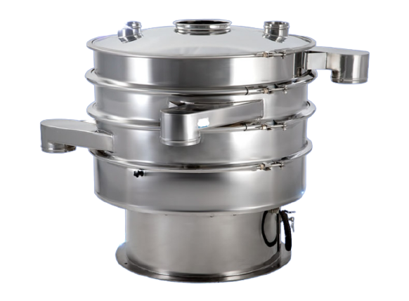 圓形振動篩是一種高精度細粉篩分設備,其噪音低、效率高,快速換網需3-5分鐘,全封閉結構,適用于粒、粉、粘液等物料的篩分過濾。圓形振動篩是由直立式電機作為激振源,電機上、下兩端安裝有偏心重錘,將電機的旋轉運動轉變?yōu)樗?、垂直、傾斜的三次元運動,再把這個運動傳遞給篩面。調節(jié)上、下兩端的相位角,可以改變物料在篩面上的運動軌跡。