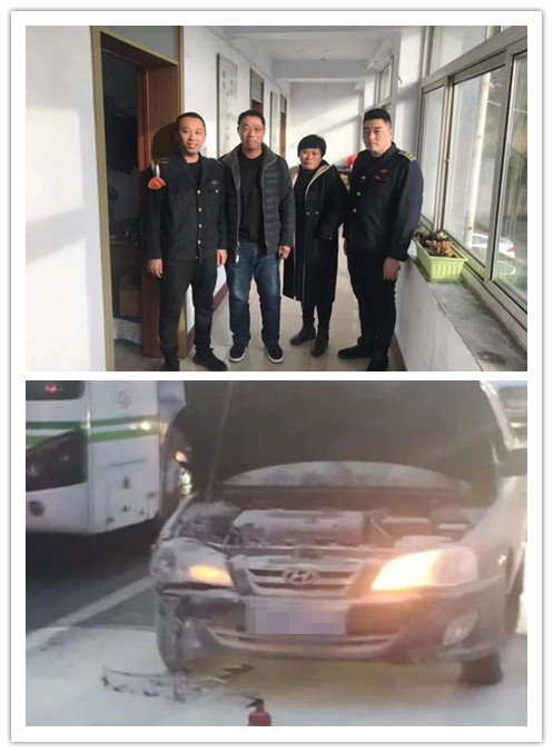 11月27日,16時(shí)50分許,三公司四隊(duì)駕駛員吳春豐駕駛56路2568公交車由唐山站駛往銀河路車場(chǎng)方向,行駛至長(zhǎng)寧道華巖路交叉口等信號(hào)時(shí),發(fā)現(xiàn)同向的一輛黑色私家車變綠燈后沒(méi)有正常起步,并且引擎處還冒起了陣陣黑煙,火苗也隨之竄出車外,現(xiàn)場(chǎng)情況十分危急。