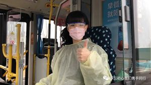 2月24日2路第一天恢復(fù)運(yùn)營(yíng),每部參運(yùn)車(chē)輛多出一名隨車(chē)體溫檢測(cè)員,王穎跟丈夫分在同車(chē)組。早晨6:00,夫妻倆已經(jīng)到2路始發(fā)站唐山站,開(kāi)始出車(chē)前的準(zhǔn)備工作:檢查完車(chē)輛安全,再打掃干凈衛(wèi)生,噴灑消毒液對(duì)車(chē)廂每處角落進(jìn)行徹底消殺。王穎跟丈夫一對(duì)一天輪流開(kāi)車(chē)、進(jìn)行登記,從唐山站行駛到啟新立交橋后,就要停留兩分鐘嚴(yán)格落實(shí)一車(chē)次一消毒。遇見(jiàn)急躁的乘客,王穎就耐心勸導(dǎo);有不明白的老年乘客想乘車(chē),她也總不厭其煩地解釋溝通。
