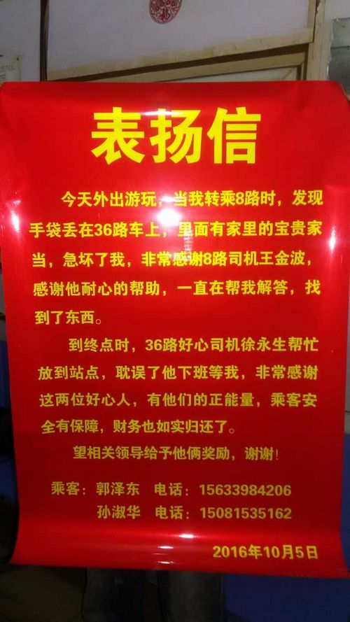 次日郭先生夫婦特意送來表揚(yáng)信,表示感謝。盡管事隔一天,但郭先生的心情仍然很激動,并且說話語速也比較快,可以看出他丟失的東西是何等重要。
