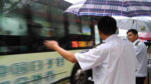 16時(shí)20分,在大雨中前行的1路車(chē)趴在了半路,一公司一隊(duì)機(jī)務(wù)隊(duì)長(zhǎng)孫愛(ài)東火速到達(dá),冒著大雨水搶修車(chē)輛。一公司副經(jīng)理許天奇、一隊(duì)副隊(duì)長(zhǎng)李福生為了讓乘客不滯留在站點(diǎn)多等一趟車(chē),來(lái)到客流量大的站點(diǎn)現(xiàn)場(chǎng)指揮調(diào)度、雨中疏散客流。