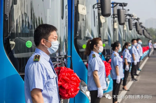 8月11日上午,唐山市新能源公交車上線運營啟動儀式在唐山站公交樞紐舉行,市委常委、常務副市長付振波,市政府副秘書長、“一港雙城”辦主任任艾泉,市人大城環(huán)委主任王玉升,市城管執(zhí)法局黨組書記、局長冀桂梅,市政協(xié)提案委辦公室主任劉貴臣,市交通運輸局副局長李東興,市城管執(zhí)法局四級調(diào)研員石中波,總公司總經(jīng)理劉東占、黨委書記夏保良出席啟動儀式。在啟動儀式上,市城管執(zhí)法局黨組書記、局長冀桂梅同志致詞,總結(jié)概括近年來唐山公交事業(yè)發(fā)展取得成績,全面介紹了純電動公交車更新?lián)Q代情況,市委常委、常務副市長付振波同志宣布2020年唐山市新能源公交車正式啟用上線運營。