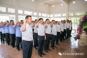 當(dāng)天早上7:40參加此次活動(dòng)的同志驅(qū)車一個(gè)多小時(shí)來(lái)到樂(lè)亭縣,懷著崇敬之情走進(jìn)李大釗紀(jì)念館。“革命先驅(qū)李大釗英魂永存”,全體黨員首先向李大釗塑像敬獻(xiàn)花籃,黨委書記夏保良上前捋平花籃上的緞帶,并帶領(lǐng)全體黨員行鞠躬禮。在黨委工作部部長(zhǎng)周群的帶領(lǐng)下,全體黨員莊嚴(yán)宣誓,在錚錚誓言中堅(jiān)定理想信念、牢記初心使命。