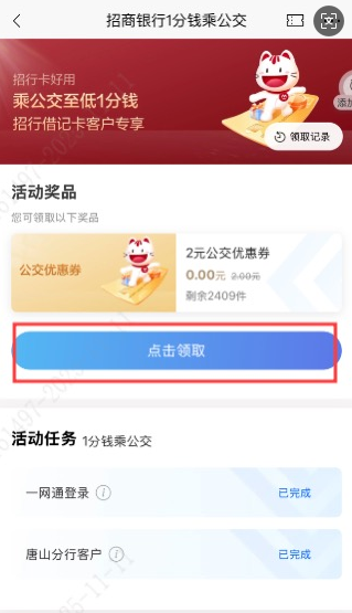 參與路徑:招商銀行App-首頁(yè)-城市服務(wù)(唐山專區(qū))-公交出行